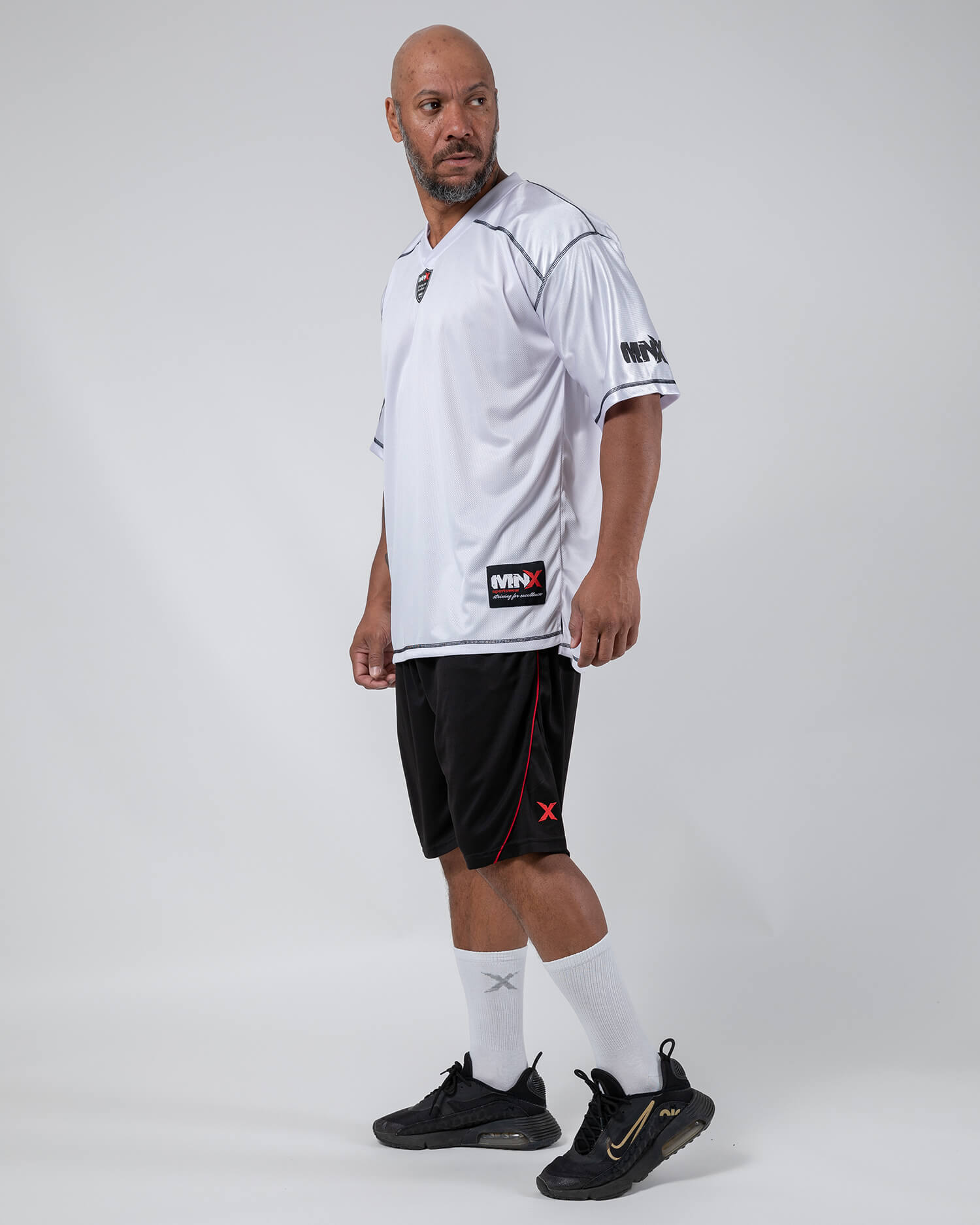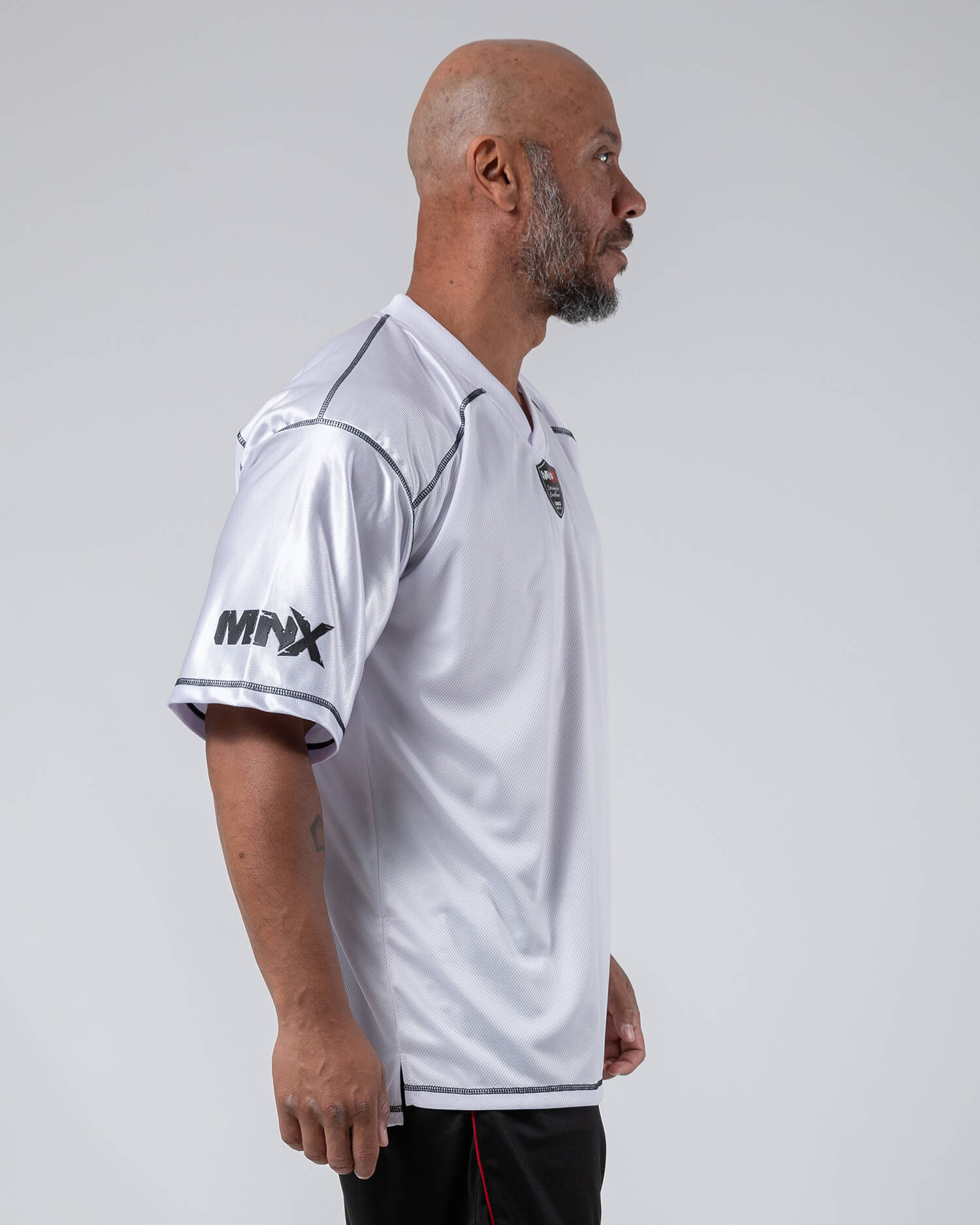 Check out this workout tee in American football style, made of breathable micro mesh fabric in white color. With black stitches and patch on front. This Football tee is perfect for your workout or casual wear.