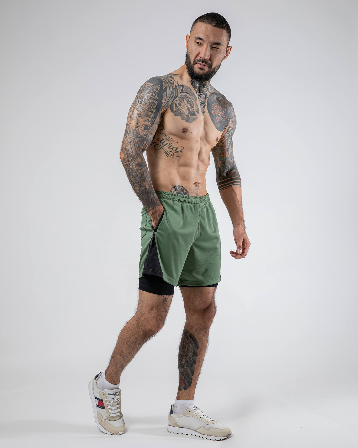 - Reißverschlusstaschen und elastischer Bund mit innenliegendem Kordelzug.