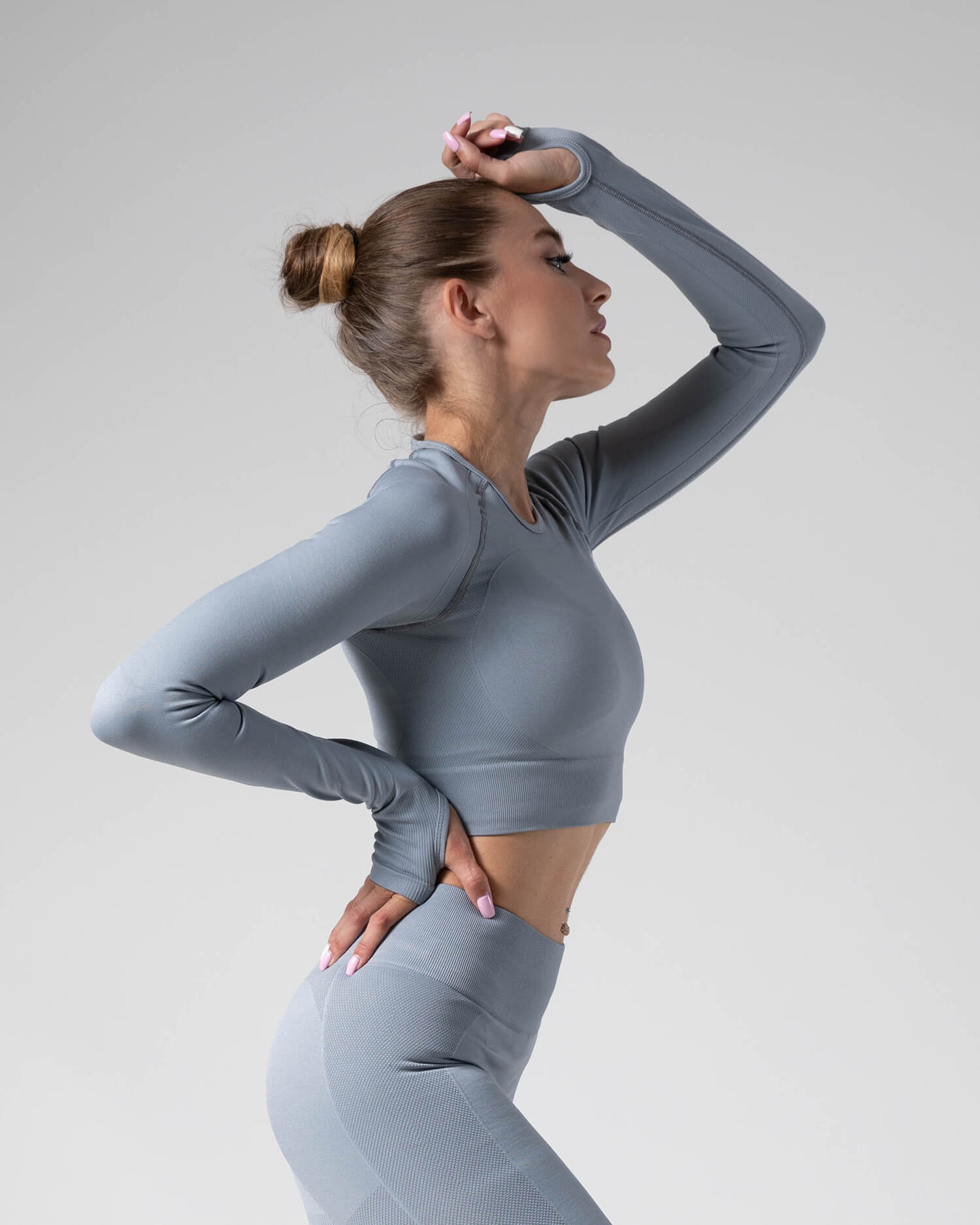 Izgledajte čudovito v tem cropped topu MNX z dolgimi rokavi. Ostanite dlje sveži zahvaljujoč tkanini, ki odvaja vlago. Ozko prileganje in brezšivna tkanina. Na voljo v več barvah.