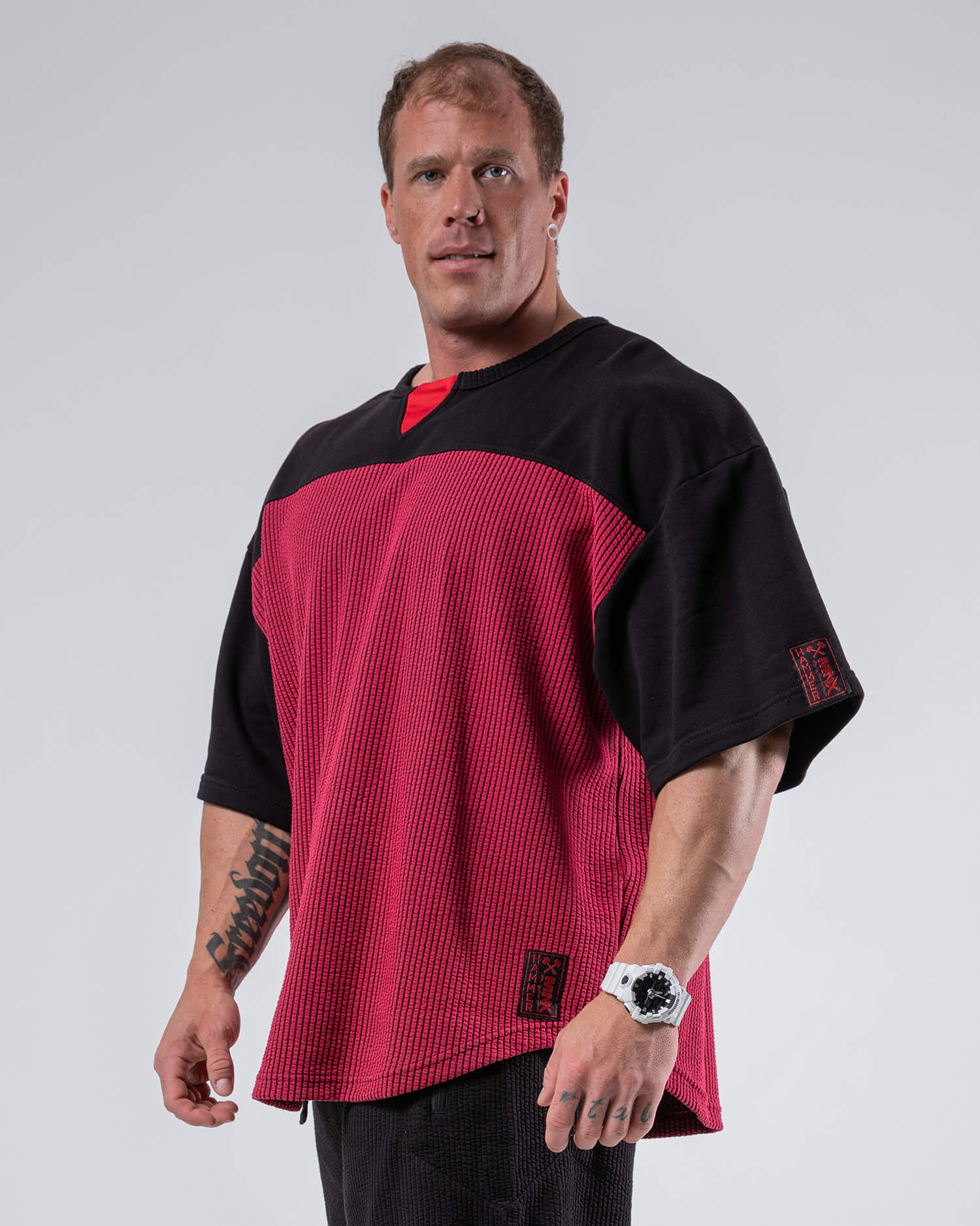 This massive workout top is a modern fusion of bodybuilding apparel and streetwear style. Made of warm ribbed fabric with oversized and relaxed fit. Combine this workout top with Hammer pants and create yourself a perfect outfit.