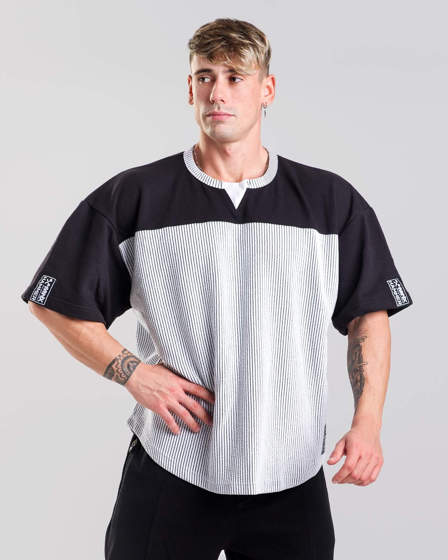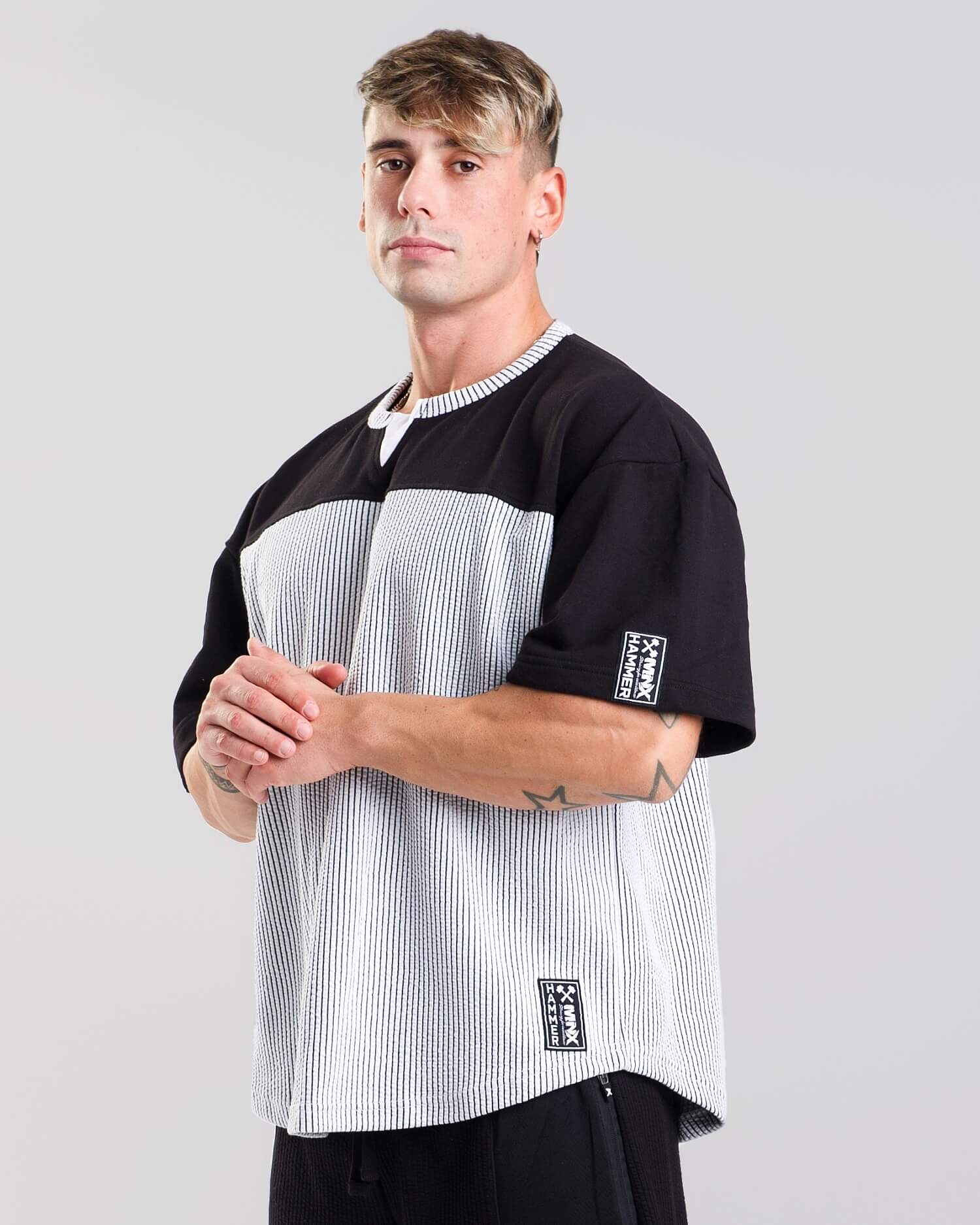 This massive workout top is a modern fusion of bodybuilding apparel and streetwear style. Made of warm ribbed fabric with oversized and relaxed fit. Combine this workout top with Hammer pants and create yourself a perfect outfit.