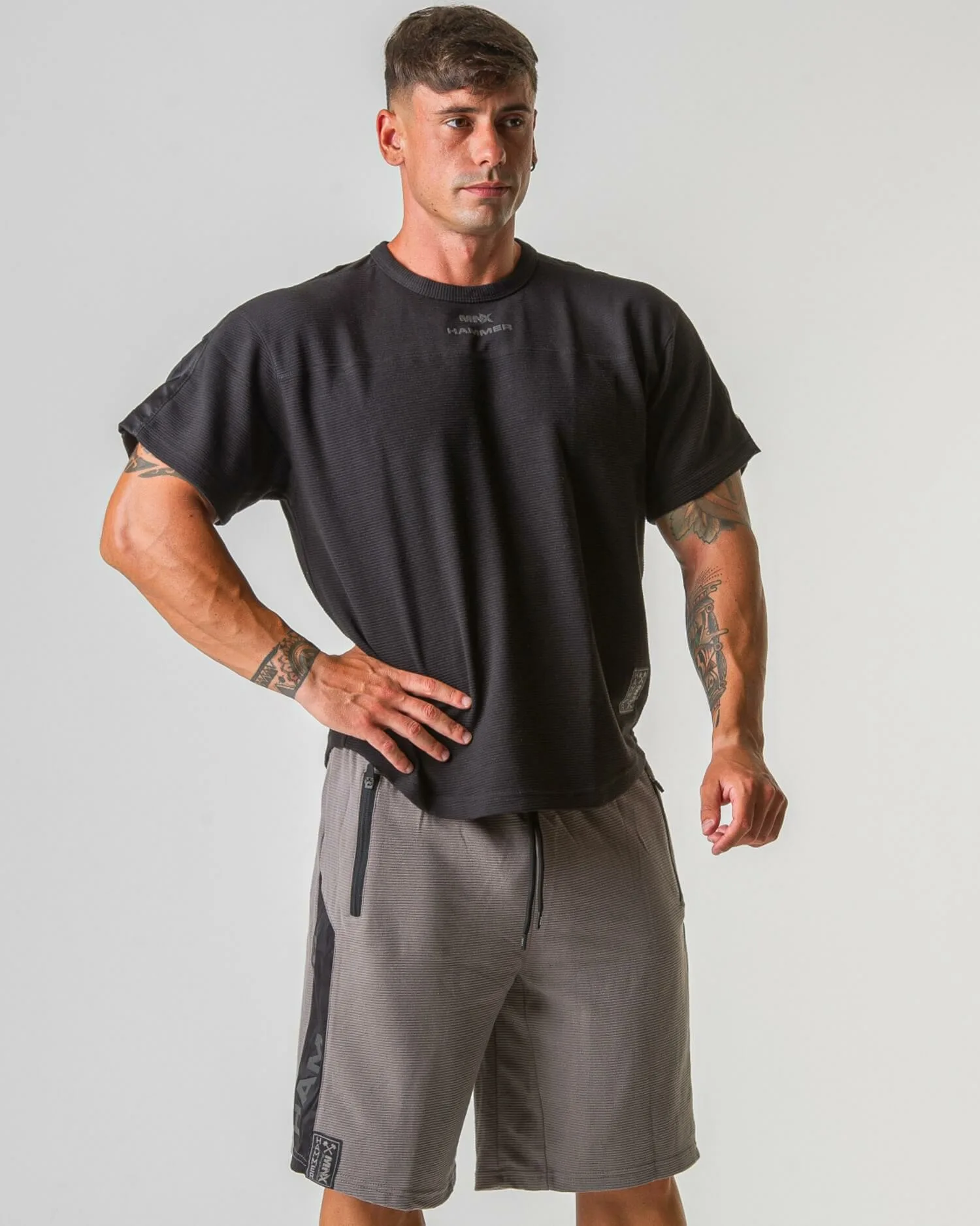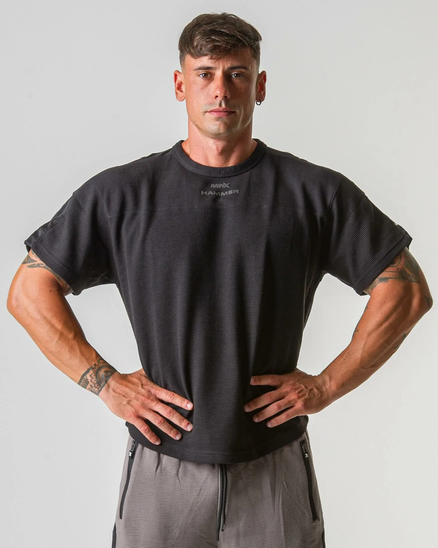 Model on studio photos wears size S/M (178 cm, 87 kg).